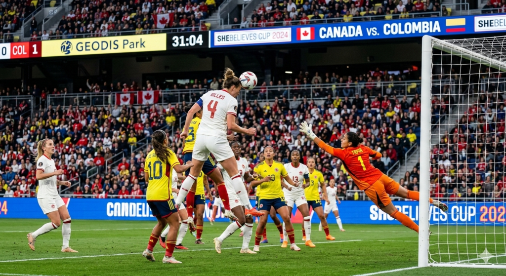 The trajectory of the match, and potentially Canada’s season, shifted dramatically in the 31st minute. Capitalizing on their physical superiority in set-piece situations, veteran Janine Sonis delivered a meticulously placed in-swinging corner kick. Defender Vanessa Gilles rose above the Colombian traffic to nod a glancing header into the net, ending the scoreless streak and visibly lifting the pressure off the Canadian squad.